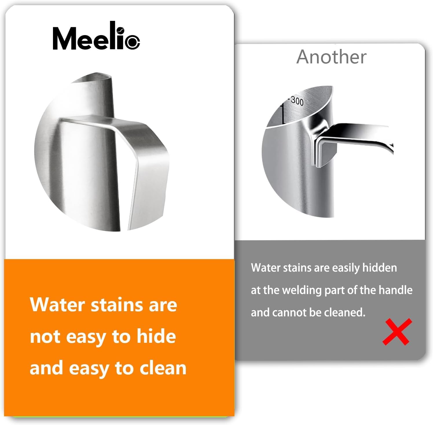 Easy to Clean – Unlike other milk frother pitchers in the market, Meelio milk steamer cup handle uses laser welded to eliminate un-washable crevices.