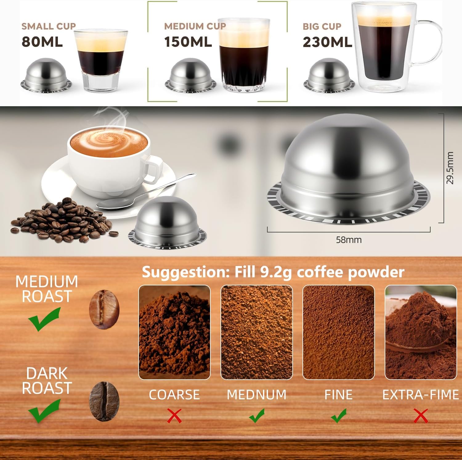 “upgrade your coffee experience with our premium stainless steel reusable coffee capsule, designed specifically for machines. simply fill with your preferred ground coffee, secure the lid, and enjoy a fresh, barista-quality brew every time. say goodbye to disposable pods and embrace the convenience of reusable pods. enjoy the freedom to customize your coffee strength and flavor while saving money and the environment.”””