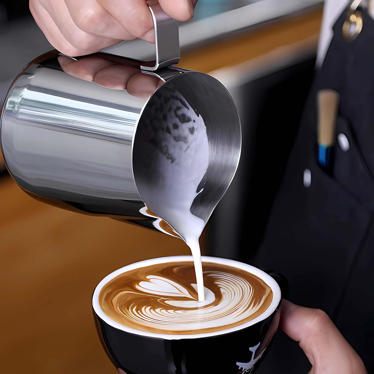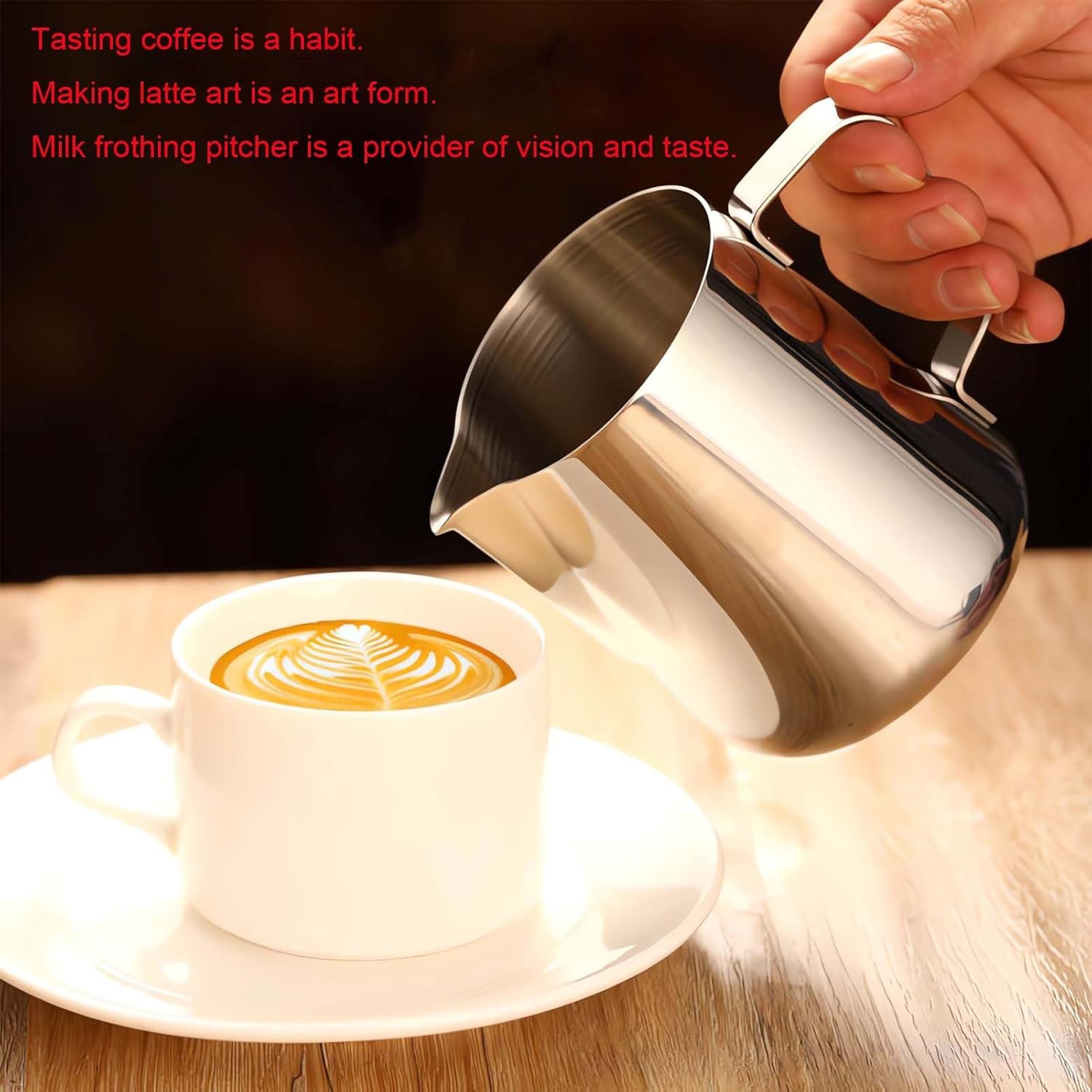 【Widely used】 The milk frother pitcher can be used for latte art at home, as well as in cafes, restaurants, offices, and other places. It is also a great gift for friends.