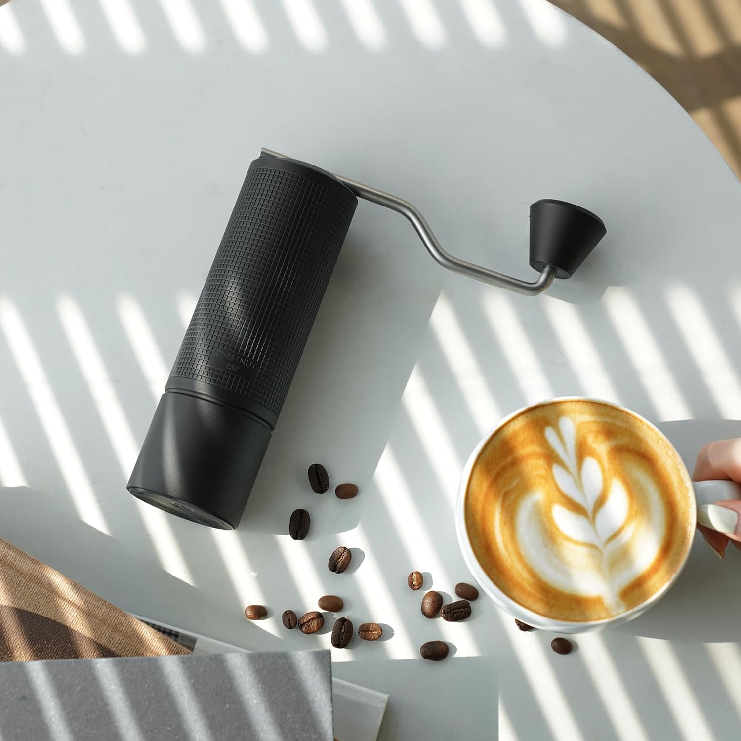 INTEGRATED METAL BODY FOR LONGER LASTING: Aluminum alloy body makes Timemore grinder a great light coffee grinder for daily use, travel or camping. At the same time, durability is guaranteed by the stainless steel crank handle, driveshaft, and the conical burrs.