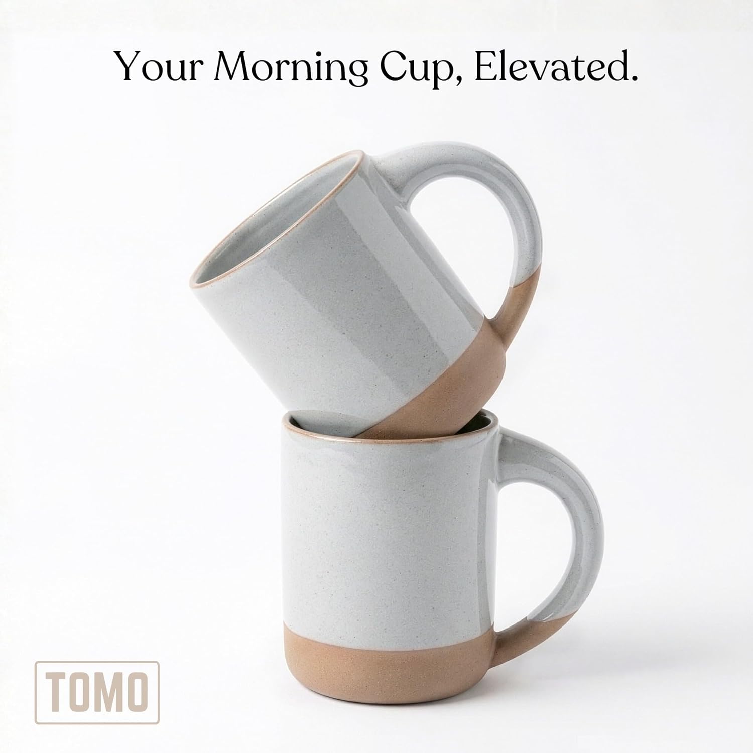 TOMO Mugs Set of 2, 12oz Modern Stoneware Coffee Mugs, Large Handle Ceramic Drinkware – Dove Grey