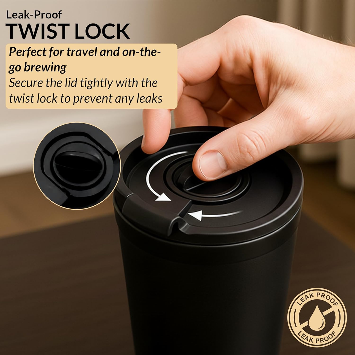 🍵Leak‑Proof Locking Lid for Safe On‑the‑Go Use – Secure locking lid with tight-fit seal means zero spills in your bag, backpack, or car. Perfect for camping, commuting, office, or travel without mess.