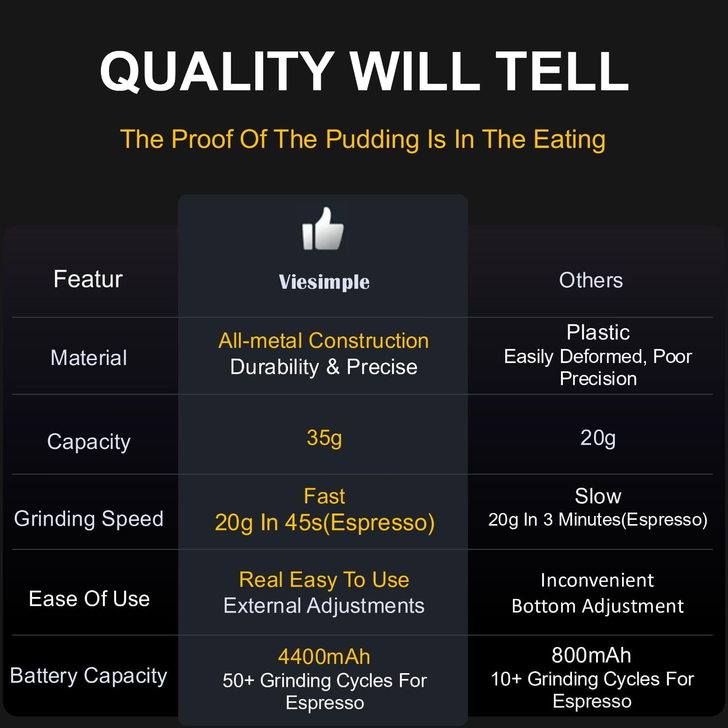 The video showcases the product in use.The video guides you through product setup.The video compares multiple products.The video shows the product being unpacked. Viesimple Rechargeable Portable Coffee Grinder Merchant Video