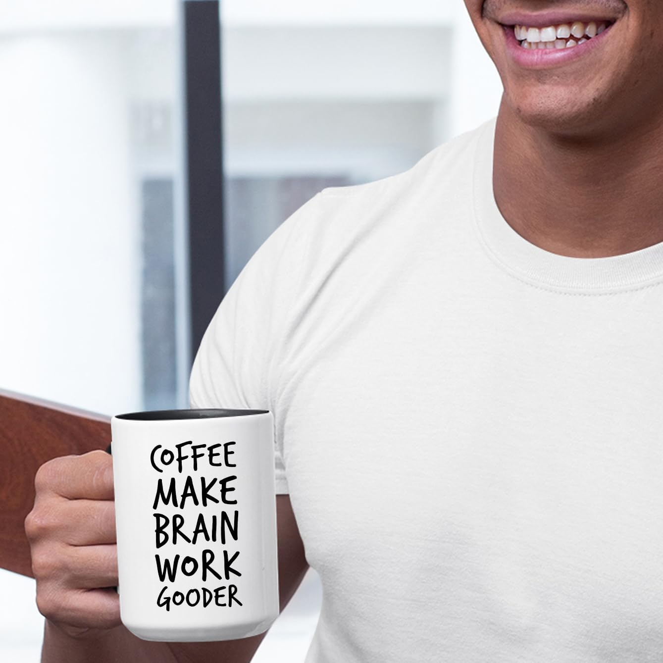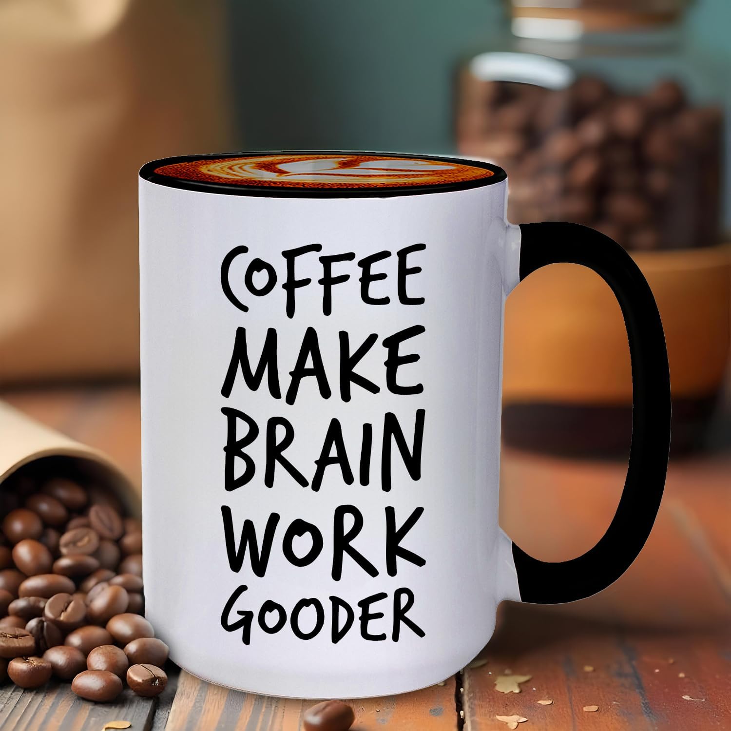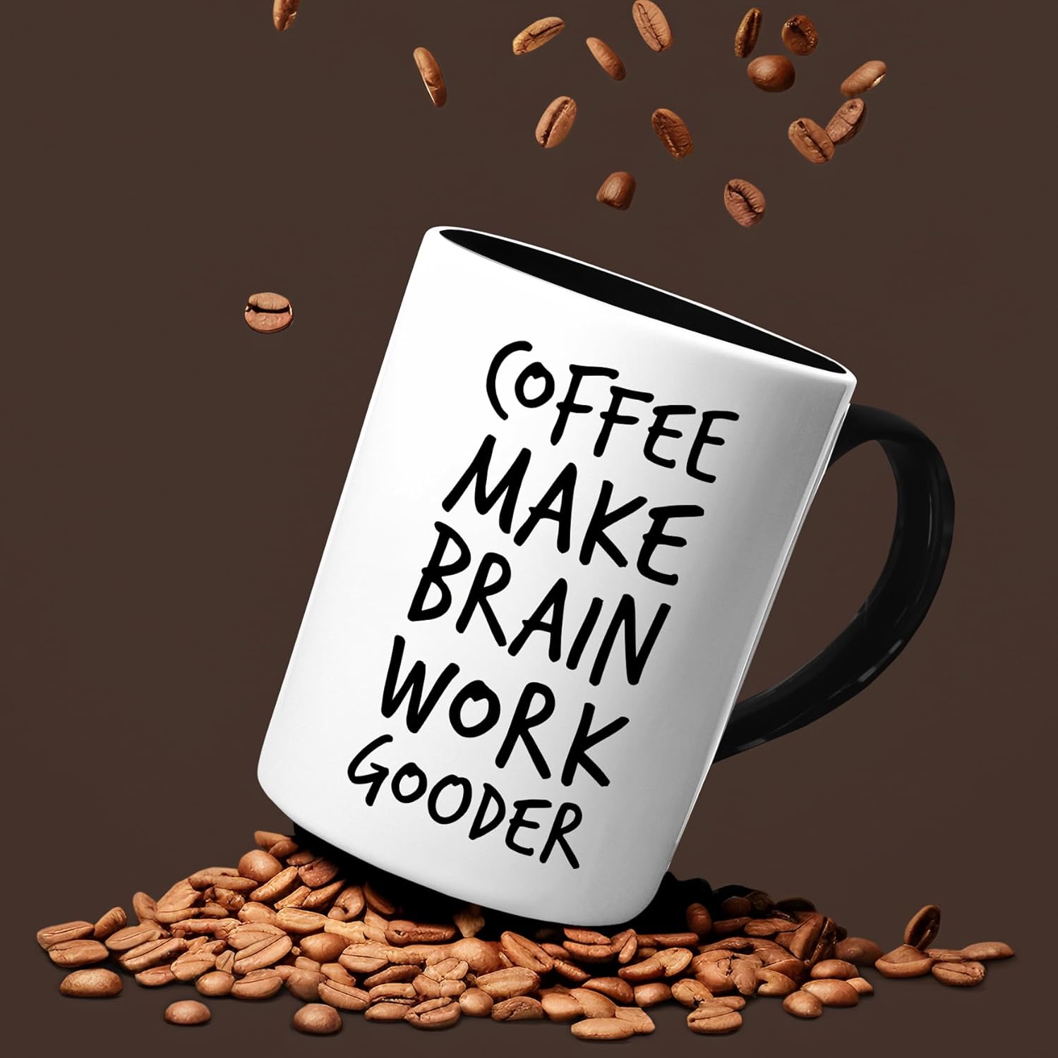 Veracco Coffee Make Brain Work Gooder Mug Funny Coffee Lover Gift Humorous Idea Family Friends Birthday Presents Sarcastic Office Tea Cup Caffeine Addict Brain Booster Gooder Vibes
