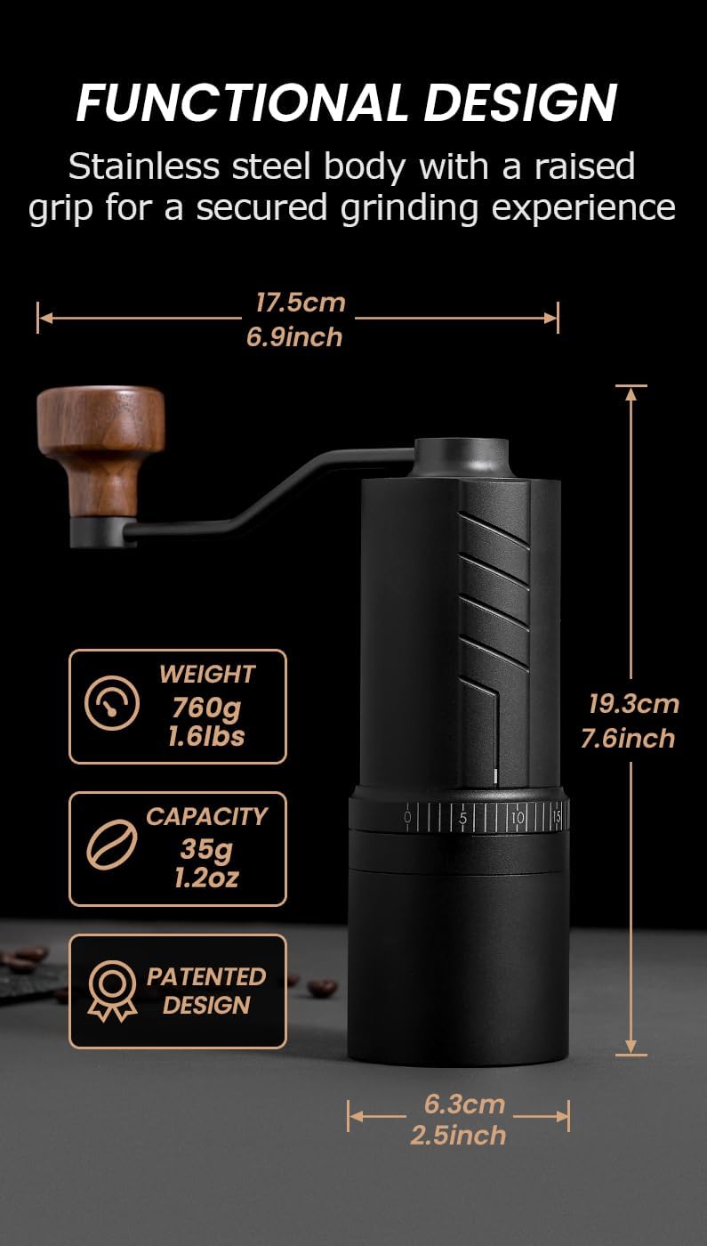 [ Cleaning Tools Set ] – In each O20 manual coffee grinder set, an air blowers and brush are included, which will aid in cleaning the internal and external parts of the grinder core. The all-metal structure, cannot be washed