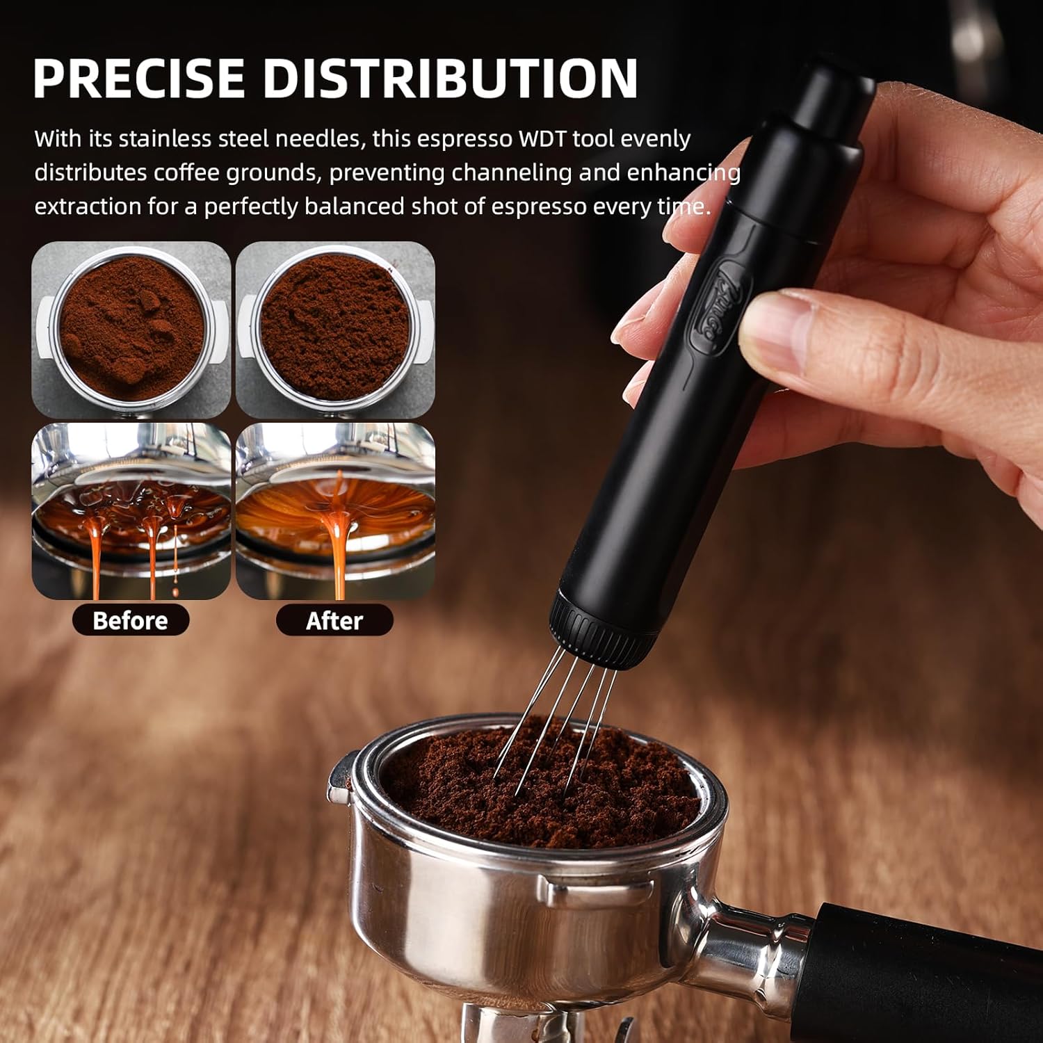 【PRECISE DISTRIBUTION】The WDT Espresso Distribution Tool is engineered to break up clumps and evenly spread coffee grounds, leading to smoother extraction and richer flavors in every shot of espresso.