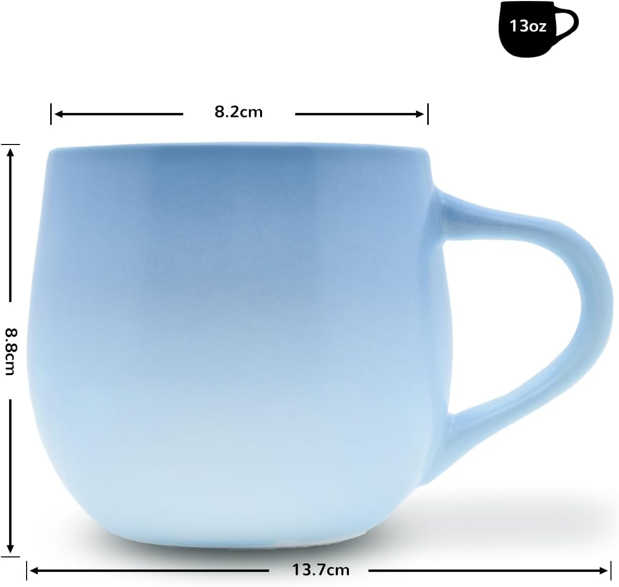 12oz Ceramic Mug, Dishwasher & Microwave Safe Durable ceramic stoneware with a smooth glazed finish and easy-grip handle for coffee, tea, or cocoa at home or work. Ceramic retains heat well—mug may feel hot with boiling liquids; handle stays cooler. Please use care.