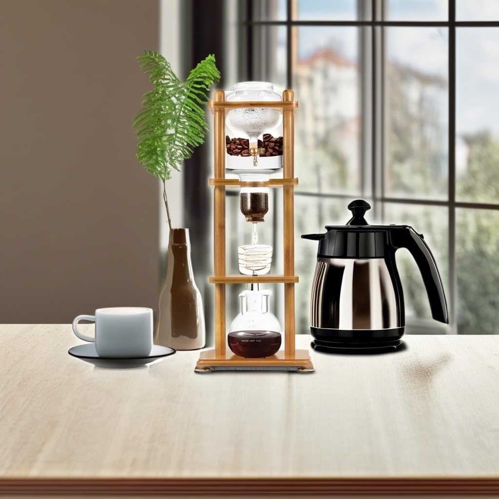 Yama Cold Brew Maker I Ice Coffee Machine With Slow Drip Technology I Makes 6-8 cups (32oz), Large Capacity Cold Brew Coffee Tower, Bamboo Straight Frame